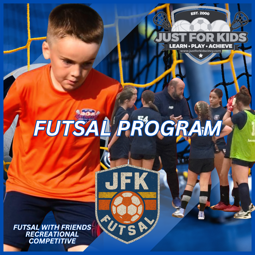 Welcome to Just FoR Kids in Greater Cincinnati Our February Futsal with Friends Mini session at the ARCC Has sold out! To get on the waiting list please email: Admin@justforkidscincy.com If we get enough names on the wait list that are interested, we will open up an additional session on Friday AFTER this class: 6:00-6:30 PM