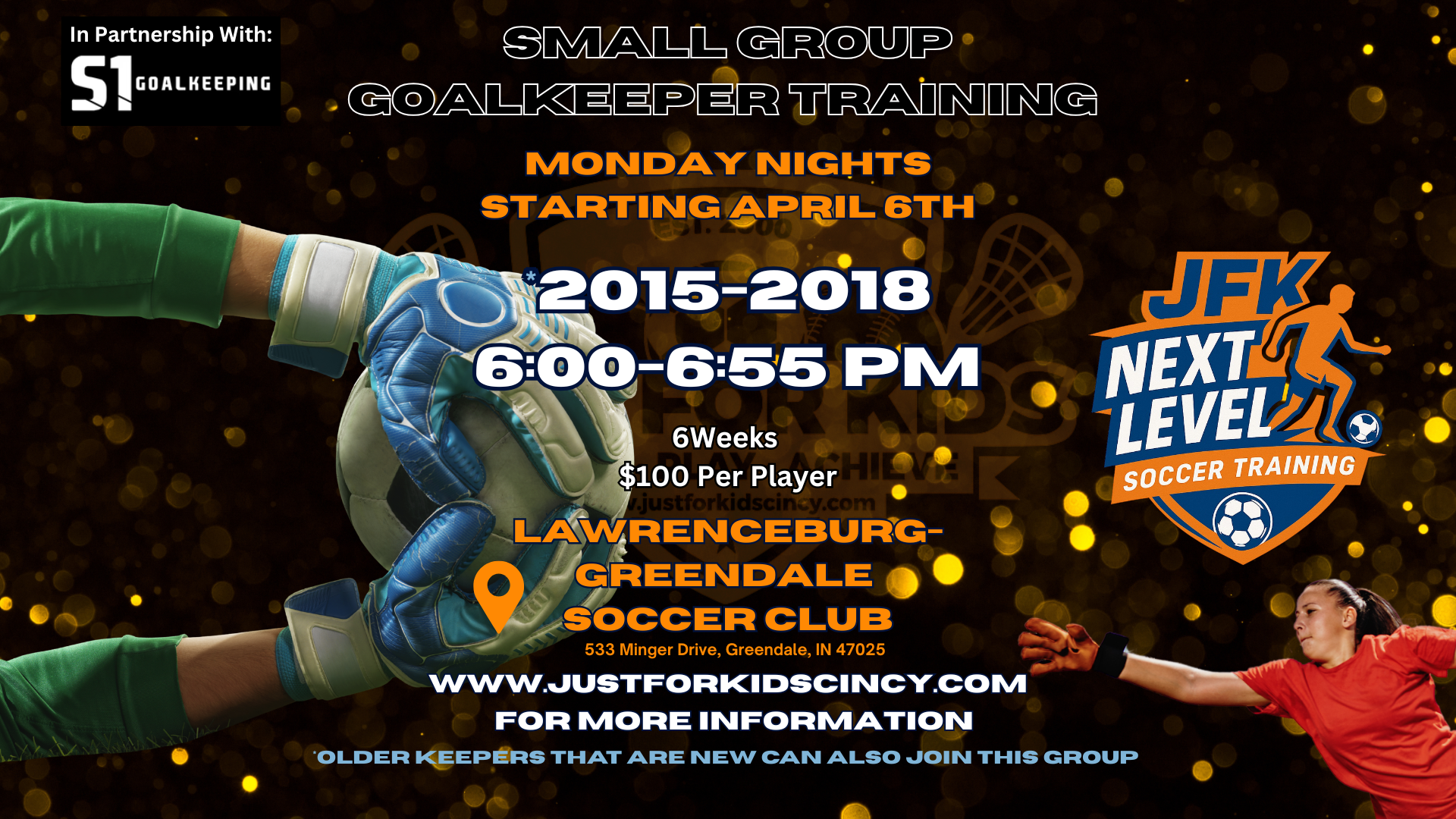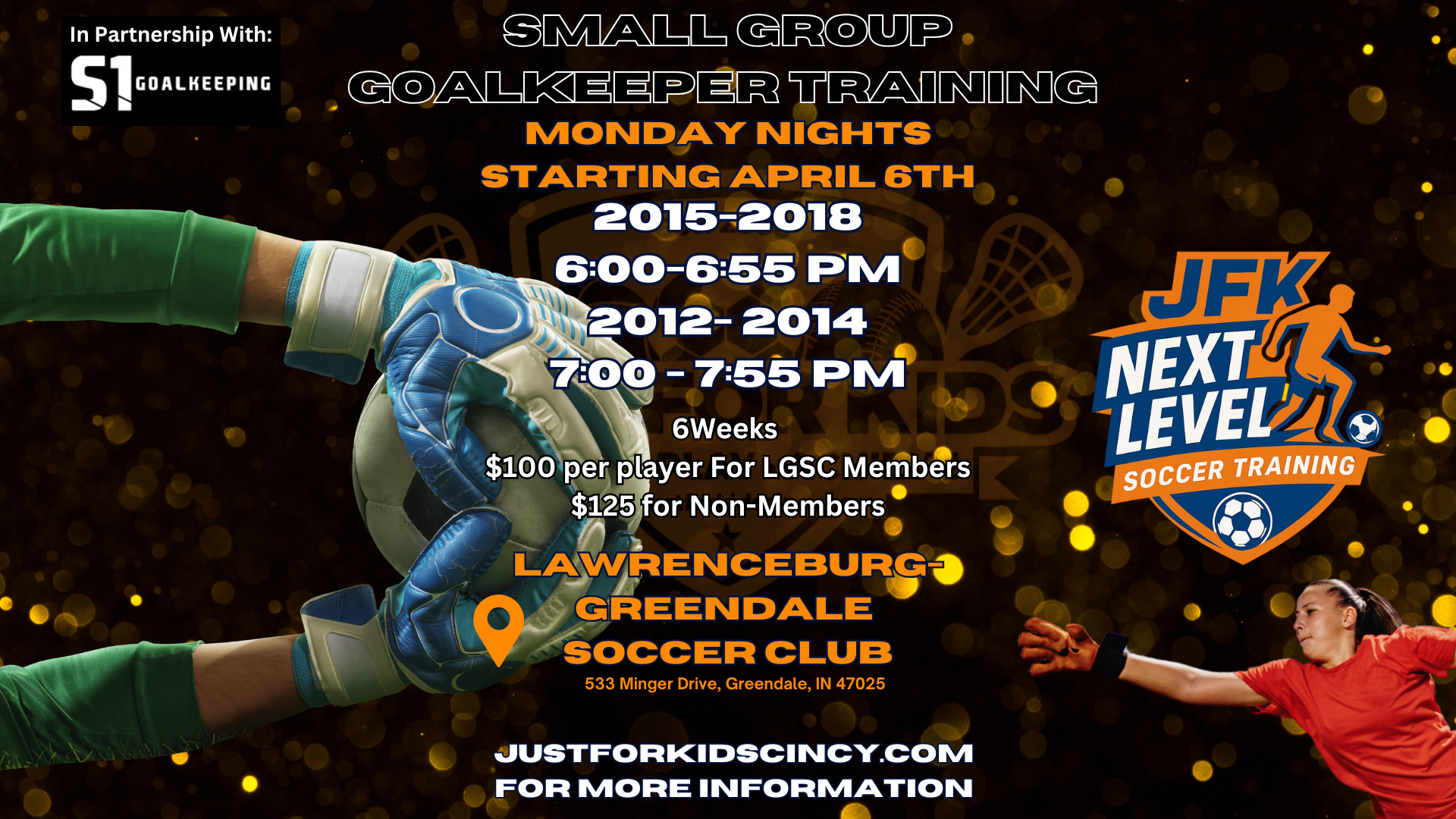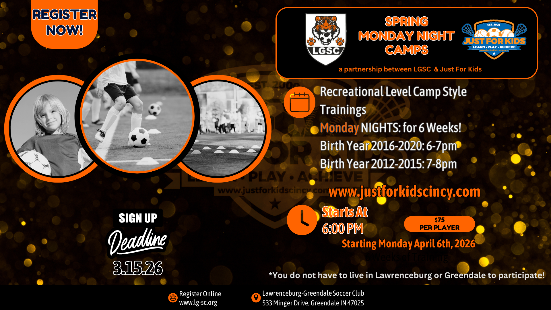 All sessions take place at the Lawrenceburg-Greendale Soccer Club fields 533 Minger Drive, Greendale, IN. 47025