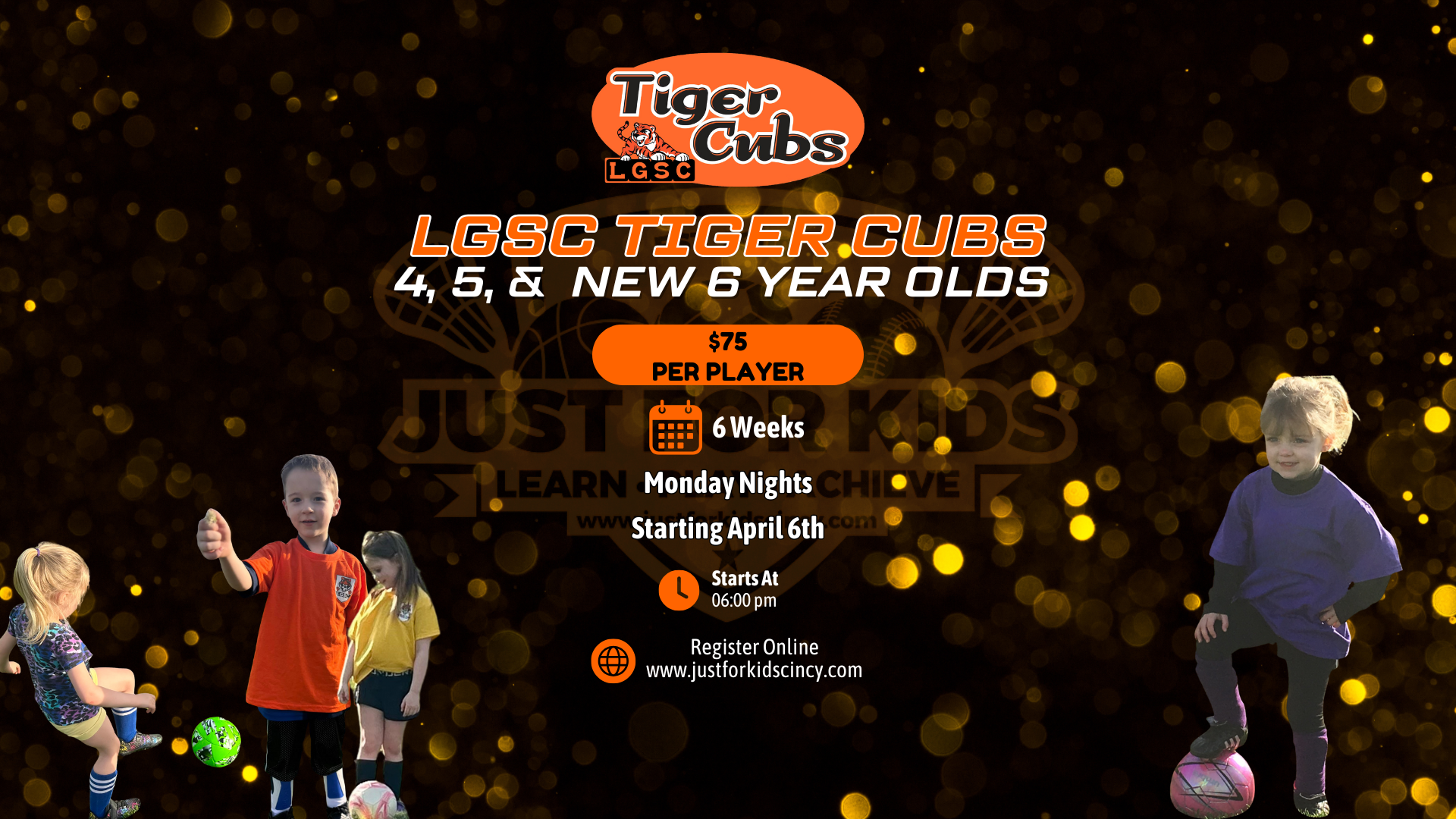 The LGSC Tiger Cubs program is a fun, low-pressure introduction to "real soccer" for young players. This volunteer-coached program focuses on getting kids comfortable with the game while keeping things energetic and age-appropriate.